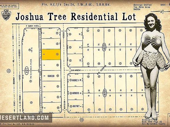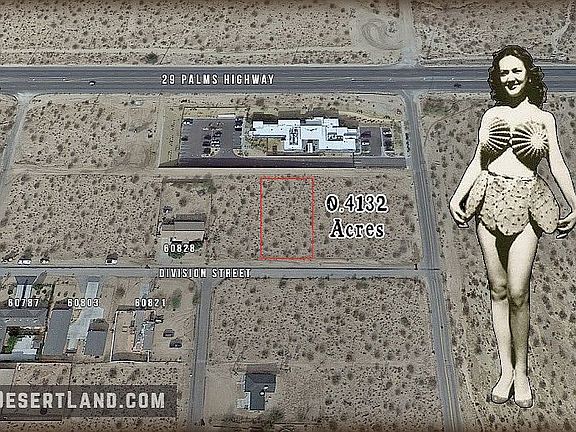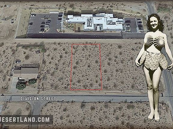 The map placement on this listing is not correct. This is vacant land and currently has no street address. Please see the satellite images for the correct location. This is a large 18,000 square foot residential lot on Division Street (001) in Joshua Tree. All amenities are nearby as this property is close to the 29 Palms Highway, the town of Joshua Tree, Joshua Tree National Park, and the grocery stores of Yucca Valley. Water and electric available along the street (Buyer to verify). ----------------------------------------------------------------------------------------------------- To purchase this property on terms from DesertLand, we require a Down Payment of $3500 and a Flat Rate Escrow Fee of $492. So your total start-up cost for the property on Division Street 001 is $3992. You can then choose a loan that best fits your budget: 5-year loan ($288 a month), 10-year loan ($174 a month), or a 15-year loan ($138 a month). We conduct a traditional escrow with title insurance. We do not require a credit check. Do not have the down payment? Look into our Down Payment Program. On that program, it is only $383 to start owning this land on Division Street 001 today.