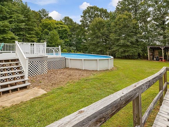Rural living in Ramseur on over 5 acres of land and within 10 minutes of Wolfspeed megasite . Exterior of home features wrap around covered porch, large deck (trex) over looks large above ground pool for entertaining. Beautiful flowers, garden area, concrete parking pad, outbuilding & shed. Interior features 3 bedroom, 2.5 bath, office/flex space, gas logs and much more. Stainless steel appliances remain in kitchen