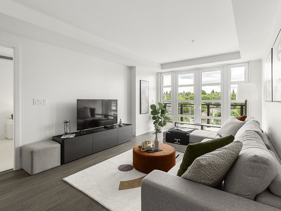Rarely available upper floor East facing luxury 2bed 2bath suite at The Kirikland set in the heart of Kerrisdale. The Kirkland is an architectural masterpiece with a unique mix of heritage & modern style. This boutique building has one of the most distinguished designed structure, with New York style lobby, and high-end luxury materials throughout the building. This upper suite offers open concept living & dining, Wolf & SubZero wine fridge & appliances seamlessly integrated into quartz counters, and custom designed cabinetry. The spa like master ensuite has lavish soaker tub, walk-in shower, in-floor heating, and towel warmer. Steps away from the Kerrisdale shopping and dining, the Arbutus Greenway, and top schools in Vancouver. This opportunity is not to be missed!
