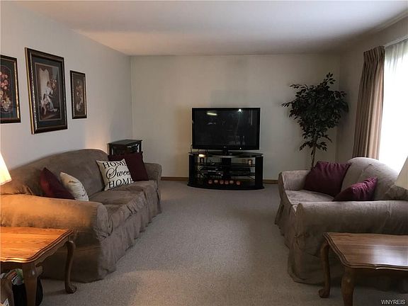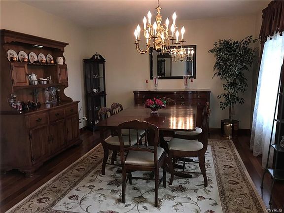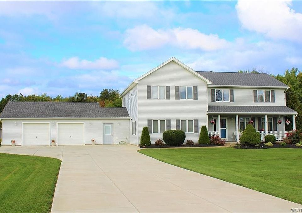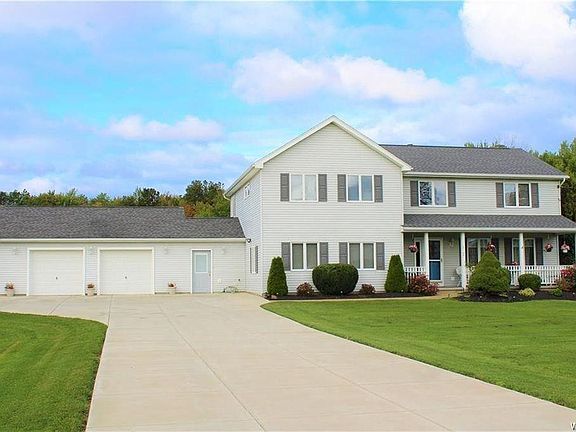 This home is priced well below market value! Give it your own personal taste & style! 4+/2.5 bath colonial on 5 acre lot close to the Village of Hamburg. Relax on the front porch, eat-in kitchen has all appliances & breakfast bar & leads into the formal DR w/laminate wood fl. The FR has a ventless cast iron gas stove & plus LR w/great view of the yard. All this space is perfect for family gatherings! Breezeway w/refrigerator & freezer to the 2.5 car attached garage. The 2nd floor offers 4 bdrms plus a 5th room (w/no closet) could be 5th bdrm/office/craft rm etc....Master has a cathedral ceiling, WIC & full bath w/Jacuzzi tub. Full basement partially finished, newer double wide concrete driveway, roof on house 2 YR, garage 7YR, new HWT, furnace & AC done in 2015, 2 sheds & more!