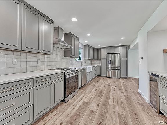 Completely renovated home situated on a beautiful lot backing to Centennial Link Trail! Homes in this neighborhood rarely become available and you won't find anything this gorgeous! The home has been meticulously updated with not a single detail left untouched. At first glance, notice beautifully cared for landscaping and the freshly painted exterior. Once inside, walk through the open floor plan with new flooring throughout. The entire first floor has been reimagined and renovated. The kitchen is the true star of the show; completely open, all new cabinets, counter tops, backsplash, farm sink and brand-new appliances. The views into your backyard are everywhere with large windows allowing a flood of natural light. The half bath has custom tile work with cool, modern touches. The front room would make a great formal dining room and the living room in the back is the perfect location for enjoying time with friends and family. Notice the vaulted ceilings with new lighting and an updated fireplace with beautiful tile for those cool Colorado evenings. Upstairs you’ll find the primary bedroom suite with an added custom walk-in closet, spacious new bathroom with cool design features and 3 secondary bedrooms. The shared bathroom has gorgeous tile and clean finishes. The finished basement boasts an oversized living area, full bathroom and oversized laundry room with plenty of storage. The neighborhood is conveniently located near the High Line Canal, award winning schools and has fantastic shopping and dining all around. Minutes from Cherry Hills Marketplace that includes Trader Joe's, Home Goods, Chook Chicken and more! The neighborhood offers a community pool (optional) and easy access to I-25 and 470.