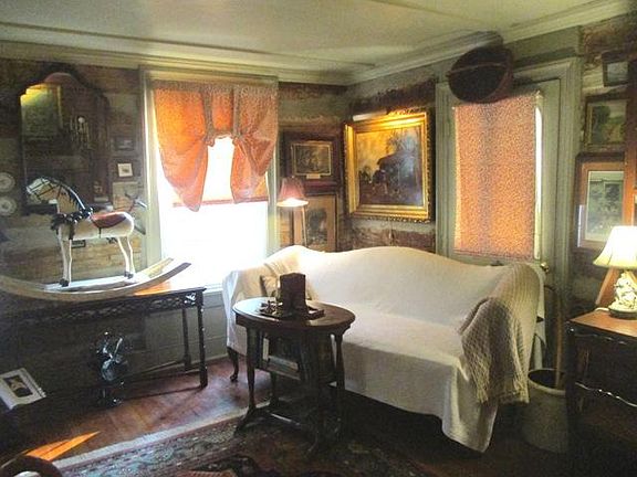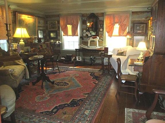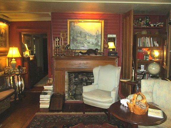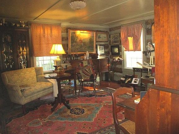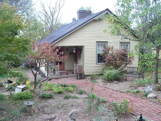 Living Room & main bedroom are the original log cabin built in 1845. Logs are readily viewed from interior. Wide plank wood floors are original in these two rooms. Fireplace in Living Room and bedroom. They have been converted to gas. Dining area off kitchen with exit to charming covered front porch. 2nd bedroom is very spacious with washer/dryer hook-ups in closet area. Bath is nicely up-dated & has tub/shower combo & attractive fixtures. Range & recently purchased refrig. convey with property. Basement houses the furnace & water heater and is great for storage. Seller has done plumbing & electrical updates. Plantings throughout the yard are amazing. Black iron gate & fence at front are thought to be original. Recent roof. If you are a history buff at all, you will love this property!!!