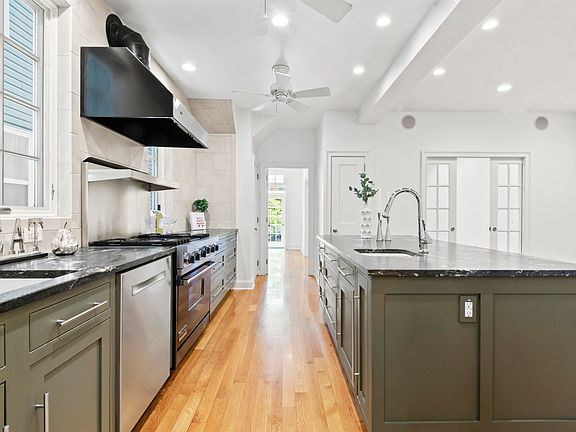 How do you describe the perfect home? This luxury custom redesigned single family home, sun drenched with Pella windows, is an entertainers paradise unlike anything you've seen in Bayonne. The Chefs Kitchen was designed with high end Viking range, Bosch dishwasher and expansive center island, all adorned with flawlessly selected honed granite countertops. Meticulous attention to detail is seen throughout this impressive bright and airy open concept home. Careful consideration of natural light was made priority in the redesign featuring French entry and pocket doors and transom windows throughout. Upon entry enjoy direct sightlines to the secluded back patio off of the main living area. Upstairs you will find two spacious and sunny main bedrooms with custom wall to wall closets. The bathroom shower with rainfall showerhead and body jets is a spa like oasis complete with a serene soaking tub room. The third floor contains two more generous sized bedrooms, each with natural skylights and views of New York and the Verrazano Bridge plus another full bath. Conveniently located near the light rail station and the turnpike make for one of the quickest commutes to NYC in all of Hudson County. Just blocks away from the gorgeous Hudson County Park, one block from Horace Mann school and near shops and restaurants of Broadway. Take a tour today!