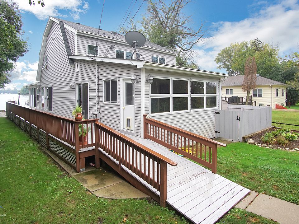 Lake Front Home with Impressive location and views of Pistakee Bay and Pistakee Lake, enjoy a great view of 4th of July fireworks from your deck, 3.5 car garage with walk-up attic and extra storage area of 20x 8 for your water toys, Home and Garage with New Roof and Siding in 2015, New Seawall 2019, 2-tier deck with tree house, Pier included, Open floor plan, Kitchen with eating area, Enjoy the views of the lake from most rooms in the home.