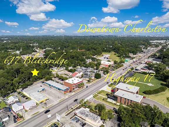 LOCATION LOCATION LOCATION! This property is zoned ''Commercial Transitional'' in the heart of the 17 Commercial Corridor in West Ashley. You are close to 526 and downtown Charleston. The .55 acre double lot is large enough to accommodate many different kinds of business opportunities. This property can also be residential, and the detached garage could be converted into an income producing rental (buyers agent to confirm all aspects of this). The residence has been updated with a newer metal roof, remodeled kitchen, and hardwood floors. It boasts a large privacy fence, grand oaks, and mature landscaping.If you are looking for a business opportunity or simply room for a pool and privacy, 617 Blitchridge is your ticket.This is an As Is sale.Easy to Show!