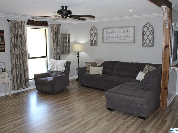 Less than $170K PRICEVILLE SCHOOL DISTRICT!! Minutes from Huntsville and I-65 You will have the best of both worlds in this remodeled 3 bdrm 2 Ba, 2 acre homestead, Stainless Frigidaire appliances, shiplap kitchen island, and neutral Repose Gray interior will compliment any furnishings. The renovated Master Bath with its marble top vanity and low threshold tiled shower with seating is beautiful. The 2 acre property is completely fenced for your Fur Babies! A small creek runs through part of the land. You'll love the storage and workspace in the 1000sqft shop on the property (wired for electric) perfect for woodworking or auto repair. The custom built treehouse will be the kiddos favorite.