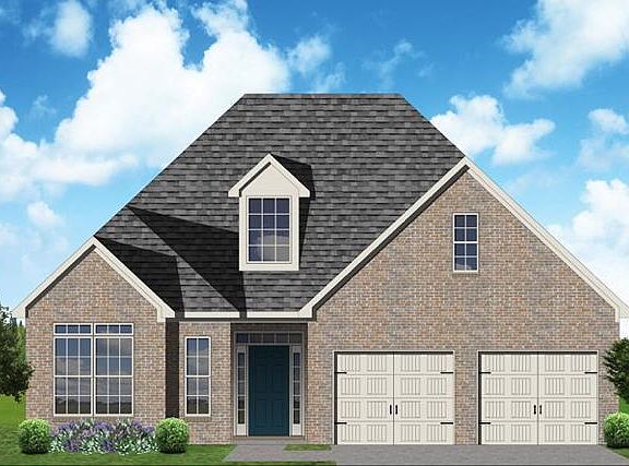The Fitzgerald floor plan is one level living at its best! The home features an open layout with 10 ft ceilings throughout the foyer and family room. The kitchen wing of the home has a breakfast nook, breakfast bar, abundant cabinetry, granite countertops, pantry, butler's pantry open to the dining room, as well as a mudroom with built in drop zone and laundry area. The master suite features bedroom with double trey ceiling, a large bay window, luxury bath with drop in garden tub and fully tiled shower, and spacious closet.Bedroom 2 has 9' ceilings, and Bedroom 3 has vaulted ceilings, a feature window, and a plant shelf.The plan's exterior features include hip roof lines, decorative dormer, transoms around the entry door, a covered entry, separate garage doors with 4 ft garage extension.