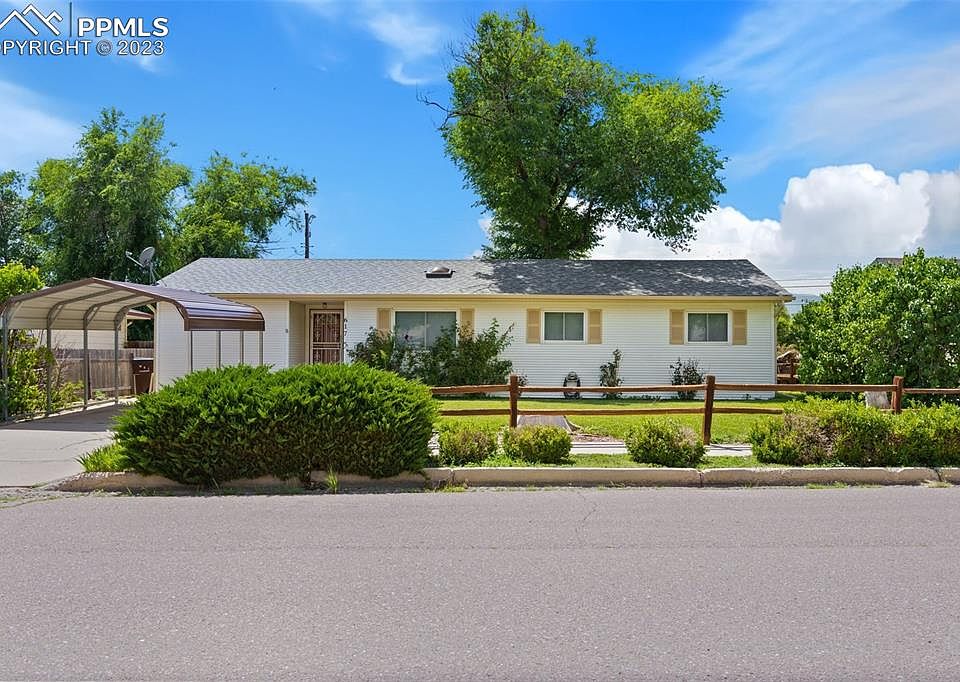 Welcome to this delightful ranch-style home in the heart of Fountain, Colorado, nestled in the tranquil Meadowlark Subdivision. The single-story layout allows for effortless navigation throughout the home, with every room accessible on the ground floor. The interior square footage includes a welcoming living room, a functional kitchen, and comfortable bedrooms. The garage was converted to living space with a half bathroom and can be used as an office, secondary living room or a non-conforming bedroom. The exterior of the home features composition shingle roofing and an inviting, low-maintenance yard that is perfect for gardening enthusiasts and outdoor relaxation. A built-in carport provides vehicle cover. The backyard is fenced with oversized concrete patio and storage shed. Access to transportation is relatively easy, making it convenient for commuters and travelers.