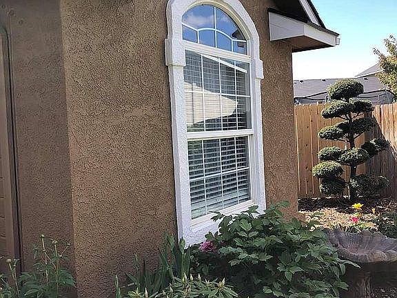 Beautiful stucco arch entrance in the front. Giant family room with plenty of room for guests, and a lovely gas fireplace. Dining room big enough to seat 6. Master bedroom (12x14) comes with it's own bathroom (toiletry, 2 sink counter, shower, and jetted tub), and a walk-in closet. The other 3 bedrooms are 12x10, 10x10, and 8x10. Guest bathroom includes toiletry, 1 sink counter, and tub. Kitchen includes granite countertops, and a floating wall bar for 2 to eat. Back entrance includes a 8x10 pergola patio with rock pillars. Lots of landscaping around the entire house. The front yard has a wrought iron fence, and a lamp post, giving it a very "park" feel. The interior was repainted in 2014. New AC/Furnace was added in 2018. Roof redone in 2018. New attic insulation in 2019. The exterior was repainted in 2021.
