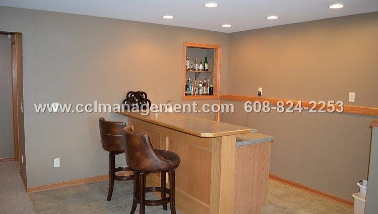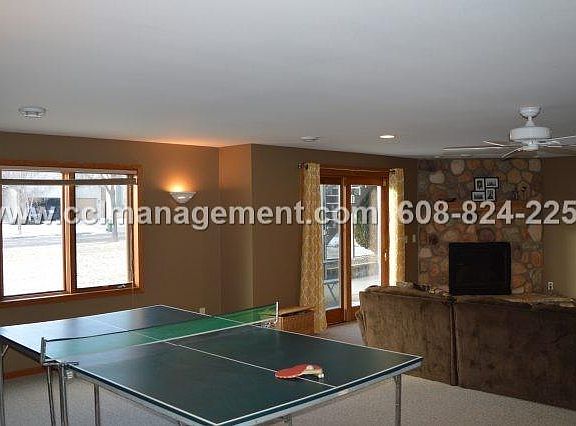 Rent this spacious home in Cottage Grove. Located on a quiet cul-de-sac with quick access to I94 and Madison. This home opens with vaulted ceilings and the living room with a stone surround gas fireplace. This leads to a large kitchen with stainless steel appliances, great storage and a breakfast bar overlooking the dinette with a walkout to the back deck. A formal dining room is off the dinette. Down the hall are 3 bedrooms. The master suite offers a walk in closet and a private full bath with double vanities, a shower and separate jetted tub. The 2nd full bath services the remaining bedrooms. A mud room with laundry is also on the level. The finished walkout basement features a large rec room with a wet bar, game space and living space with another gas fireplace. Two more bedrooms and the 3rd full bath are down the hall. Outside this home has a 3 car garage, large backyard, a back deck and a patio. Taylor Prairie, Glacier Drumlin and Monona Grove High School!! AVAILABLE AUGUST 1ST! ADDITIONAL FEATURES 2 Gas Fireplaces, Washer and Dryer, 3 Car Garage, Back Deck, Back Patio, Breakfast Bar, Central Air, Dishwasher, Finished Lower Level, Jetted Tub, Large Back Yard, Lower Level Bar, Main Level Bedroom, Main Level Master Suite, Professionally Managed, Stainless Steel Appliances, Storage Space & Walkout Lower Level!! 12 Months +