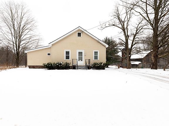 Incredible Farmhouse with 3 bedrooms and 1 bath nestled on 56 acres of beautiful pasture and wooded land. This charming property features hardwood floors, first floor laundry, and large eat-in kitchen that make for convenient and comfortable living. With newer roof, siding, furnace and hot water heater, the major components are nearly worry free. Bring your own style and finishing touches to create the home of your dreams. The former dairy barn with hay loft and silo offers a unique opportunity to convert this property back into a working farm. Don't miss the opportunity to own this picturesque and serene farmstead.