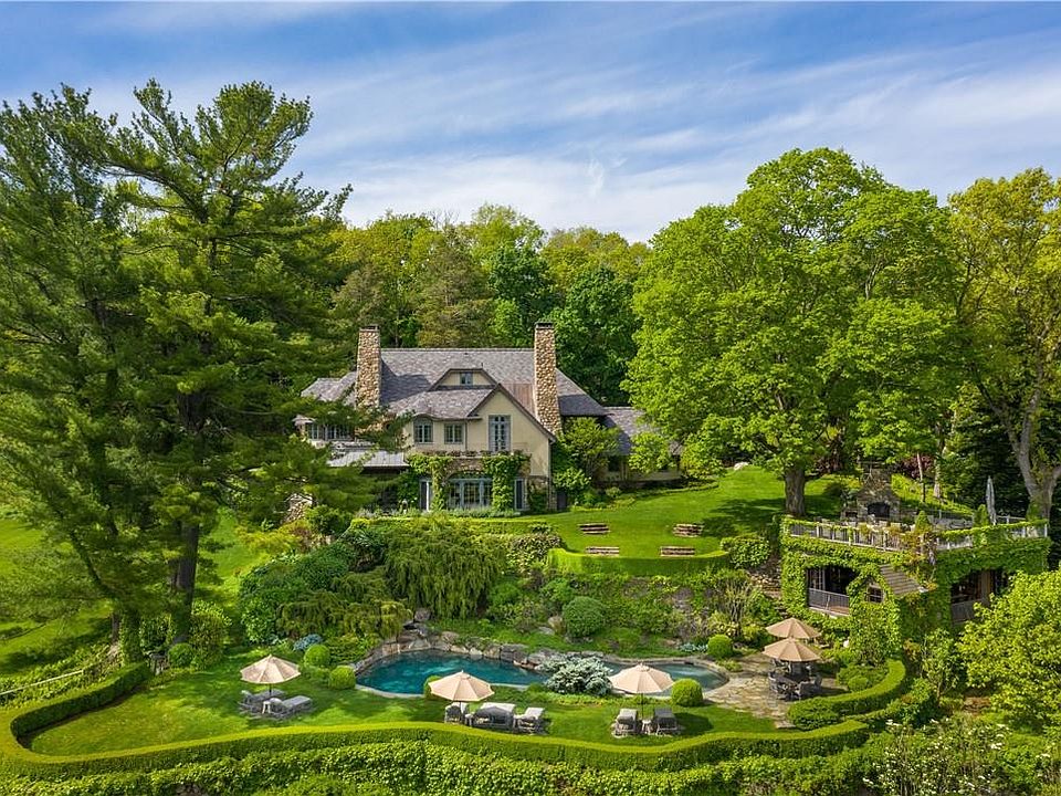 Welcome to Rockledge Farm. This 26-acre property exudes wonder and warmth on an estate scale. A sweeping drive through an allee of specimen trees presents a magical feeling while anticipating the reveal of this storybook home. Every space within the luxurious interiors has been considered to provide front rows to the surrounding grandeur. On the main floor, enjoy a roaring fire within the stone hearth of the great room or admire the splendid sunsets from the porch with folding steel-framed doors. Travel upstairs to the primary suite and balcony for an outdoor shower or a dip in the stainless-steel hot tub. Host a party in the vintage pool house with rooftop lounge, open-air living & dining space and lower-level changing area. The lovingly cultivated grounds are an immaculate backdrop to the free-form pool, Har-Tru tennis court, three-bedroom guest house, two-bedroom guest cottage, barn with golf simulator, and roaming alpacas which are an added delight. One of the most remarkable Bedford estates that will transport you to a faraway place, yet located just 45 minutes from NYC. An offering like no other. Additional Information: Amenities:Dressing Area,Guest Quarters,Soaking Tub,Steam Shower,Tennis,HeatingFuel:Oil Above Ground,ParkingFeatures:2 Car Attached,3 Car Detached,