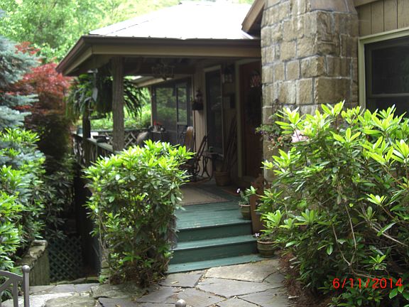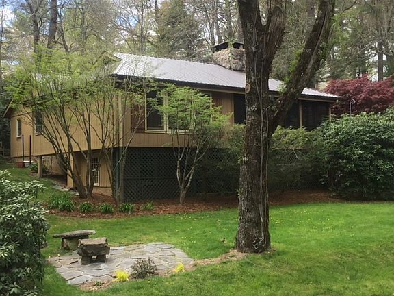 This home is located within easy walking distance of downtown Highlands. Mill Creek fronts our yard with relaxing waterfalls in the next yard. Enjoy feeding the trout or a chiminea fire on the creek-side stone patio. The lot is over 1/2 acre with mature foliage of mountain laurel, rhododendron, river birch, 100 year old black willow, encore azaleas, and perennials. There are 3 large bedrooms, 2 with in suite baths, and an extra full bath. There's an enclosable front porch for outside/inside living with an extra covered porch great for early morning tea or coffee. The lower level has a man cave/TV room adjoined to a room for exercise and additional refrigerator space. Then there's the additional storage both inside and outside under the porch areas. An extra garden house is out back that has been used as a studio. The front entrance has 2 parking places with the rear entrance parking for 5 including 2 spaces under the carport. Lastly the kitchen has stainless steel gas appliances off of the family room and dining. If you like fireplaces, there's a gas log fireplace off the dining area and two wood burning fireplaces, one in the family room area and the other on the outside/inside encloseable porch. There's a new Westinghouse combo water and radiant heating system (2018). A new metal roof for the home and carport were installed this year (2018). This home is move in ready and furnished with a few personal exceptions. You need to see this home in person. Schedule a time to be impressed with all this home has to offer.