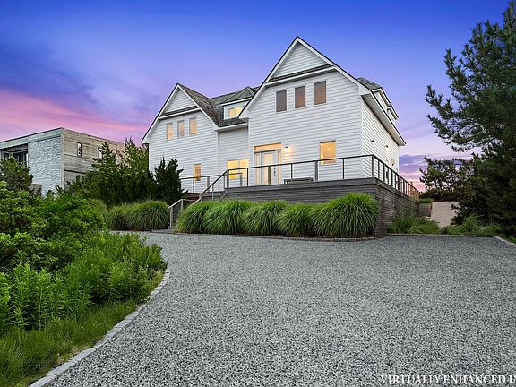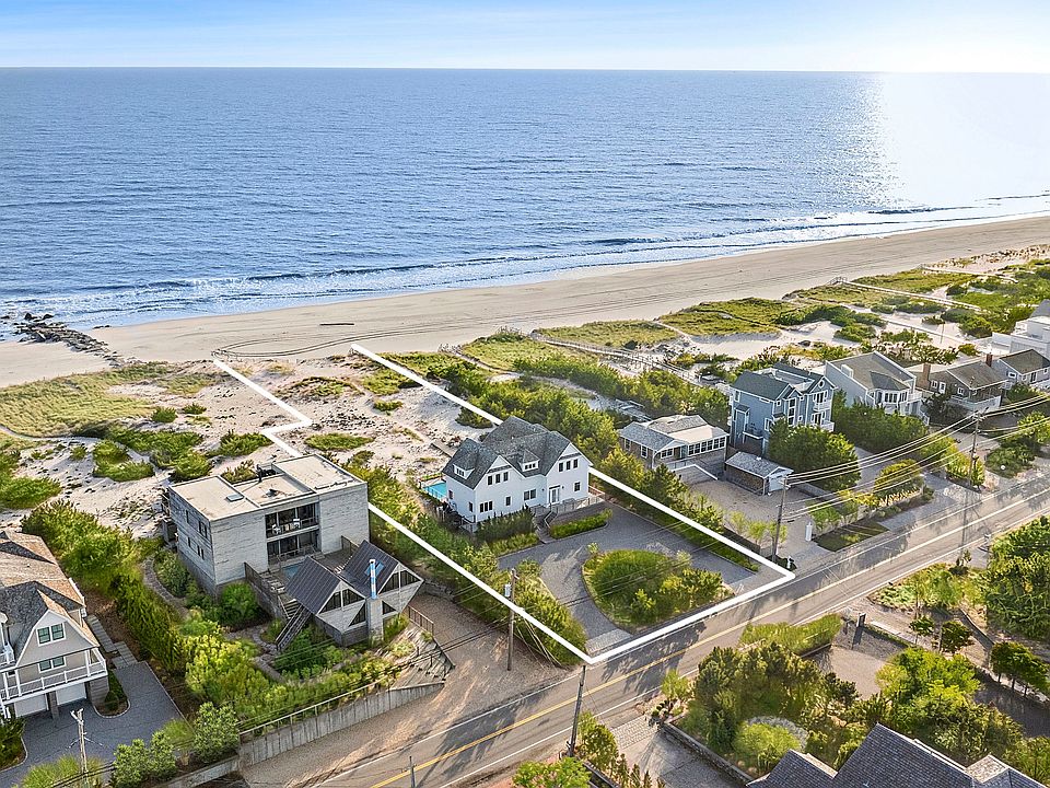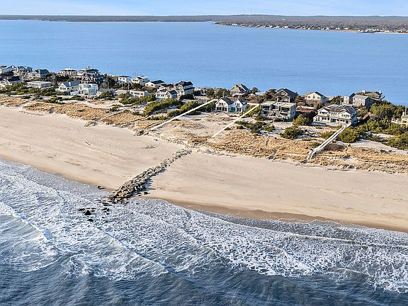 Set along coveted Dune Road, this jetty-protected oceanfront property spans approx. 0.95 acres with 100 feet on Dune Road in Westhampton. The shingled Post-Modern residence has been thoughtfully renovated, blending contemporary design with the relaxed elegance of Hamptons living. Expansive windows fill the open-concept living and dining areas with natural light, anchored by a fireplace and complemented by a refined, modern kitchen ideal for entertaining. A first-floor den offers a comfortable retreat with easy access to the deck and pool, seamlessly extending the home's indoor-outdoor living. The home features beautifully appointed bedrooms with sweeping water views, including two spacious ocean-facing suites with private balconies overlooking the ocean. Outdoors, a heated gunite pool is framed by expansive mahogany decking, while a private walkway provides direct access to the beach. A rare right-of-way to the bay completes the offering, allowing for effortless coastal living from sunrise to sunset.