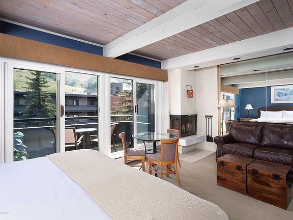 Location, location, location! Due to its proximity in Aspen's commercial core amongst the restaurants and retail stores with Aspen Mountain and the Silver Queen Gondola across the street, the Aspen Square is one of the most sought after condominium properties in all of Aspen. This large fireside studio is located on the sunny side of the building with views of Aspen Mountain. The property enjoys multiple outdoor hot tubs and a year-round heated pool. You'll enjoy the ambiance of the natural wood-burning fireplace and the comfort of central air conditioning for the summer months. Excellent rental history.