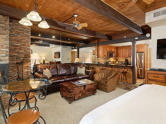 Aspen's best downtown location! Enjoy views of Smuggler Mountain, Hunter Creek Valley and Red Mountain from your top floor condo. Enjoy the wood-burning fireplace . Steps away for skiing or snowboarding on Aspen Mountain. The upgraded u-shaped kitchen layout with stainless appliances is perfect for cooking and entertaining. The tub/shower with glass shower enclosure is versatile for owners and guests. Leave your skis, boots and gear in the in-unit lock-off owner storage. Strong rental history as provided by Aspen Square Mgmt. Excellent amenities include pool, hot tubs, courtyard fire pit, elevator, meeting room.