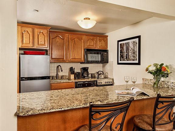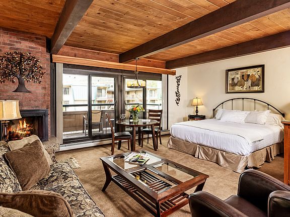 This Aspen Square fireside studio has been completely remodeled including new carpet. The convenient downtown core location is just one block to the new Aspen Art Museum and across the street from Aspen Mountain’s Silver Queen Gondola. Enjoy views of Red Mountain and Hunter Creek Valley from the private patio, which is also a great vantage point for the Fourth of July Parade. The kitchen features new stainless steel appliances and solid slab granite stone counter tops. A wood-burning fireplace provides the ideal après ski venue. The comfortable and efficient layout is thoughtfully appointed with newer furnishings and a king bed. Sold completely furnished! In-unit guest and an owner’s lock-off closets are available, as well as a full-length closet off of the bathroom. The bathroom includes a bathtub with a glass shower enclosure. Aspen Square amenities include: full time front desk, concierge services, new courtyard with pool, hot tubs and fire pit, free wireless service, daily maid service, and conference and fitness facilities. Strong rental history! Aspen's Best location, walking distance to the finest restaurants and shopping.