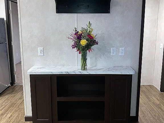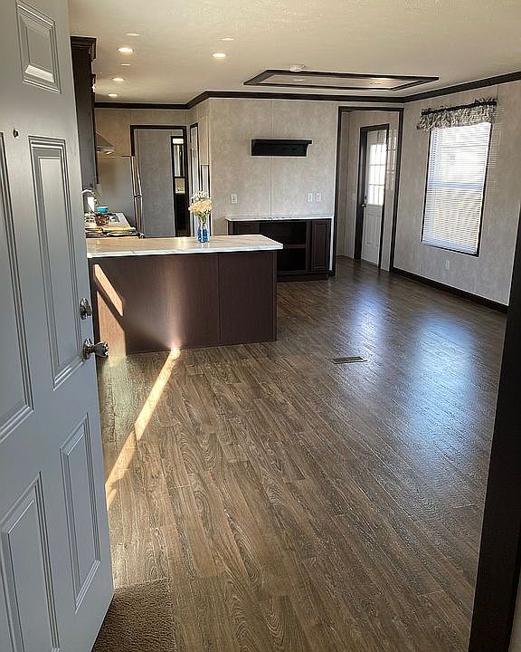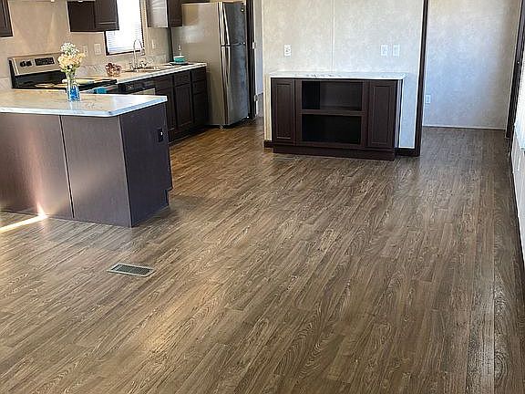 Beautiful, open floor plan with a trendy, grey color scheme.