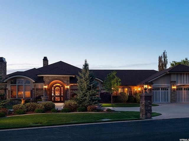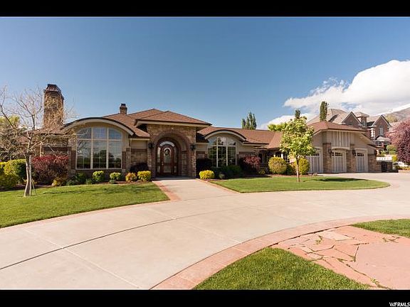 This sprawling estate is located on one of East Kaysville's most exclusive and private lots. With 5,800 sqft all on one level, this home boasts luxury finishes and amenities throughout. Intricate wood detail is found in every room. The cost to build this home in 2009 was 1.9 million. Words cannot explain the elegance of this home and all its greatness. If the stunning stain-glass front door doesn't take your breath away, the rest of the home will. The home features coffered ceilings and custom lighting that creates an ambiance of sophistication and warmth throughout. Massive foyer with stunning chandelier gives way to the formal living with fireplace with a gorgeous mantel. On the other side of the foyer is the study, that features built in bookcases throughout. Through the foyer you will find the expansive gathering area with an AWESOME recessed ceiling and amazing skylight. The layout was carefully thought out for entertaining. From the warm fireplace to wet bar with plenty of room for a semi-formal dining area. The over-sized kitchen is just steps away! You will love the size and amount of cabinets in this kitchen has to offer, along with the panoramic view of the backyard. The chefs island features a prep sink and additional cabinet space, and 2nd island bar for additional seating! The large formal dining features wall cabinets that have cooling drawers for easy access while entertaining. The very private master suites feature a combined large master bathroom with his and her areas, large walk-in shower with a stained glass window. A master closet fit for a King/Queen with floor to ceiling built in dressers and enough closet rods for everyone! On the other side of the home are 2 more guest suites, each with own bathroom, and one bathroom has a walk out to the wonderful pool/lounge area. The laundry room is enormous!! Can we talk about the the backyard now? You will love your summers in this backyard! The large pool and patio area is complimented by a gorge