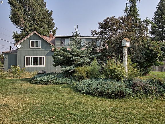Spacious and open living space on a large lot in Lostine. Fenced yard and fenced side yard-great for garden, dogs or children. 430 sf wrap around deck and mature landscape offering shade. Plenty of parking area for toys. 576 sf garage for more storage. All bedrooms are upstairs along with a cute bathroom with jetted soaking tub. Wood stove and electric heat sources. Range, Ref.Will not finance due to questionable foundation/crawlspace.