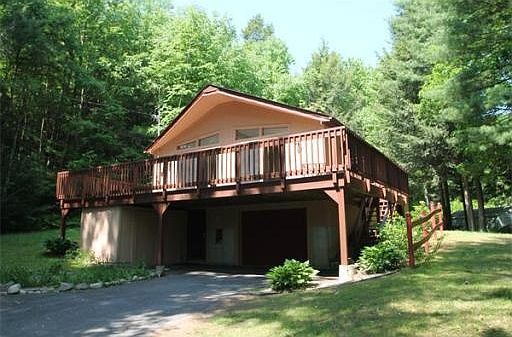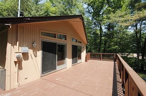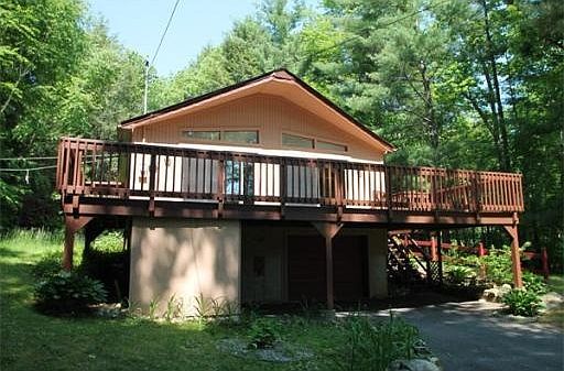 Check out the narrated HD video tour! This home is located within walking distance of, and includes deeded access to, picturesque Lake Holland, where you can enjoy swimming, boating, fishing, and more! Enjoy living in Belchertown's desirable lakeside community. Two oversize sliders with contemporary-style transoms provide ample natural light to the open floor plan of this ranch-style home. The living room/dining room area has a new carpet. The living room offers a wood fire place, as well. The sliders access the accommodating deck from where you can see the lake and enjoy outdoor living. There are three bedrooms in this home with newer carpeting, and the master bedroom includes a master bathroom. There is also a drive-under garage with shelving, and windows light the walk-out basement that has been partially finished with flooring. There is also a handy built-in shed just outside the garage. New roof! It is also located minutes from Amherst and the Five Colleges Area