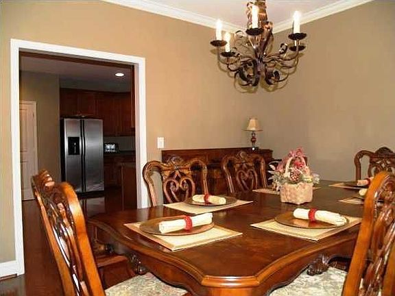 This is a great floorplan w/ all brick exterior! It's much larger than it appears from the outside! You'll love the ease and convenience of having everything you need Including 3 bedrooms and 2 full baths (including the master suite) on one level plus a 4th bedroom/den & a 3rd full bath upstairs. Storage is not a problem in this house....there's plenty walk-in attic space which is also available for future expansion. The cook in the family will love the spacious kitchen with plenty of beautiful cherry cabinets, solid surface counter tops, & stainless steel appliances. The double sided fireplace adds warmth & coziness to both the family room and kitchen. There are elegant hardwood floors throughout the foyer, family room, kitchen, & dining room. The bedrooms are all spacious. The master suite features a garden tub, separate shower, dual vanities, & a walk-in closet. The lot backs up to a wooded area which provides privacy and serenity while relaxing on the covered patio. Call Now!