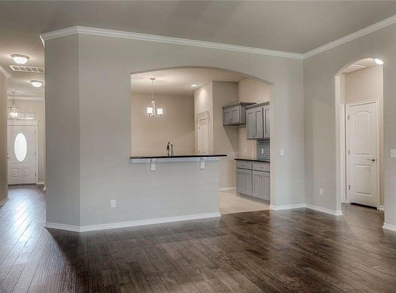 New Heartland Homes home under construction, estimated finish date is Oct. 30. Home has open floor plan with a formal dining room/study as well as a dining area in the kitchen. Kitchen will have a big island. Kitchen will have white cabinets, granite & gray tones throughout. Formal dining/study