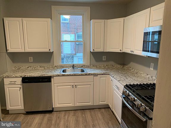 Beautifully renovated 3Bd, 1Ba house in Darby. Brand new kitchen with stainless steel appliances - microwave, dishwasher, and gas range! Refinished hardwood floors throughout. New windows throughout. Freshly painted and modernized. Full basement with laundry hookups and lots of storage space. Some parking in the rear. Convenient location within Darby. Walking distance to many stores and restaurants including the Crab Tavern!