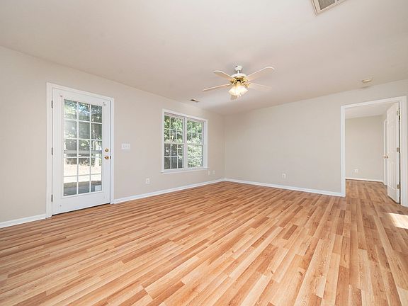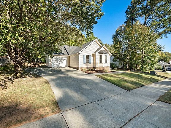 Single level bright & open 3 br-2 bath ranch home in downtown Wake Forest. All new laminate flooring, new vinyl in both baths, and freshly painted throughout The well proportioned large living room & dining room are perfect for entertaining with oversized windows overlooking the open wooded yard that will inspire your personal landscaping ideas. Great working kitchen area with lots of counter space and breakfast bar. Owners suite has large walk-in closet, dual sink vanity and stall shower. Private flat tree lined yard and large patio. New roof in 2021 & new water heater 2022....Nicely located near downtown restaurants, entertainment, shopping, highly rated schools, and parks!