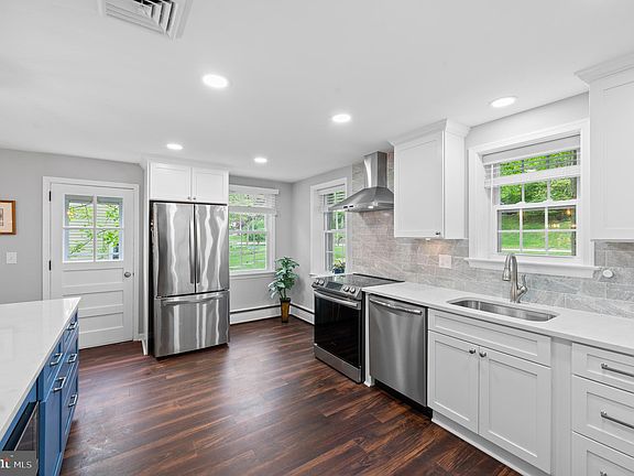 Welcome to 617 Hickory Lane - nestled in the highly coveted Woodlea neighborhood of Tredyffrin/Easttown school district, on a quiet street and a picturesque wooded lot. This charming stone ranch boasts four bedrooms, two and a half baths, a new and expanded kitchen, hardwoods throughout the main floor, a new picture window in the living room overlooking the yard and tree tops, a spacious lower level family room with stone fireplace and beautiful .69 acre lot. Plus there is room for expansion in the attic with full ceiling height & multiple windows! As you step inside, a wide stone floored foyer welcomes you and large picture windows bring the beautiful views inside. The stunning brand new kitchen, thoughtfully designed with modern finishes is open and expanded. Featuring crisp white cabinetry, quartz counters, tile backsplash m, induction cooktop and stainless appliances it is not only beautiful but functional! The contrasting blue island with seating opens to the dining space. With room for a large table this is truly the heart of the home. A large living room is adjacent and offers room for several conversation areas centered around the wood burning fireplace. The primary bedroom is generously sized and features two walk-in closets and an updated primary bathroom with neutral ceramic tile, frameless glass shower door and vanity with ample storage. Three other bedrooms each with large double closets share the updated hall bathroom with soaking tub shower combo. The lower level is a fantastic space with an open staircase; it is an extension of the upper level. A stunning stone feature wall is the focal point with a wood burning fireplace. The perfect spot for cozy evenings with loved ones or entertaining guests to watch a game. The laundry room, a powder room, two car garage and large storage/utility room complete this level. The walk up attic is floored and ready for converting to living space, maybe a new primary suite with large bath and closets- or as the neighbors did- add two bedrooms and a full bath. An office, a studio, home gym or just keep it as exceptional storage- The possibilities are there! Situated on a generous .69-acre lot, this property offers plenty of outdoor space for recreation and relaxation. Step outside onto the flagstone patio, where you can bask in the tranquility of your surroundings or host gatherings with friends and family. With woods covering a large portion of the grounds the lawn is low maintenance but could be expanded easily to take advantage of the space. Don't miss this opportunity to make this fabulous stone ranch your own. It's a wonderful opportunity to move to and has upside potential to expand one day! With award winning T/E Schools, proximity to King of Prussia, Malvern, the Main Line, and timeless charm, it's sure to exceed your every expectation.