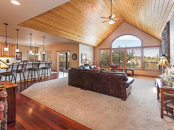 Beautiful Craftsman home on the West Ridge in Eagle Crest. Great room with vaulted ceiling & gas fireplace. Gourmet kitchen with granite counter-tops, gas cook-top range, stainless appliances & wine refrigerator. Cherry floors, alder cabinetry, trim & doors throughout. Luxurious master suite with walk-in closet and private deck. Bedrooms on main level & large bonus room on 2nd with half bath, entertaining bar and large deck with view of Smith Rock. Greenbelt in back ensures privacy and views are preserved.