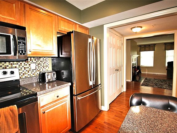 617 Hunting Creek Rd is a beautiful end-unit townhome in the Foxchase community. Featuring three bedrooms, two and a half baths plus almost 2,000 square feet of living space, this home will not disappoint. The oversized living room, dining room and kitchen boast gleaming hardwood floors. The kitchen is open to the dining room and features stainless appliances, gorgeous backsplash, and a center island with additional counter height seating. From the dining room, there’s a tri-sliding glass door that leads to the sundrenched deck. Three large windows allow plenty of natural sunlight into the living room…for the chilly evenings there’s a gas fireplace. The master bedroom has an ensuite bath. Two additional bedrooms, a full bath and laundry room are on the upper level too. A huge game room (with an extended ceiling height) that leads to a concrete patio and two-car integral garage are on the lower level.