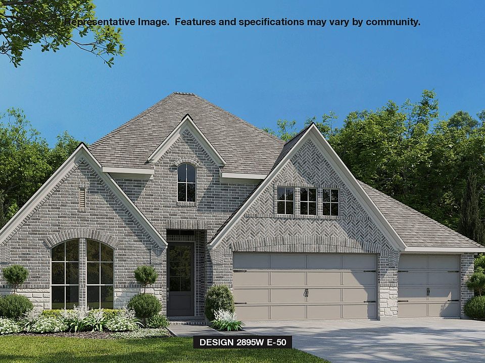 Extended entry leads to open family room, kitchen and dining area. Family room features wall of windows. Kitchen hosts island with built-in seating space. Game room with French doors just off family room. Secluded primary suite. Dual vanities, garden tub, separate glass-enclosed shower and two large walk-in closets in primary bath. A Hollywood bath, high ceilings, large windows and abundant closet space add to this one-story design. Covered backyard patio. Mud room off three-car garage.