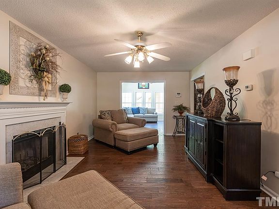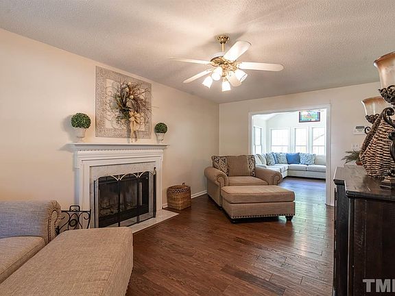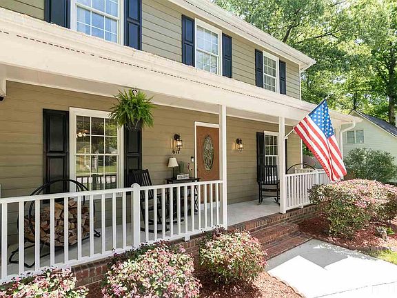 Beautiful bright & open floor plan w/oak hardwood floors. Rocking chair front porch & wide driveway to friend's porch. Family room w/WB fireplace open to sunroom w/vaulted ceiling, fan & built-ins. Updated kitchen has granite counter tops, stainless steel appliances & walk-in pantry. Formal dining room for entertaining. Master suite w/walk-in closet & private bathroom w/2 sink vanity. 2 patios, pergola, raised vegetable beds & storage building in fenced back yard. Convenient to highway, shopping & dining.