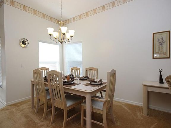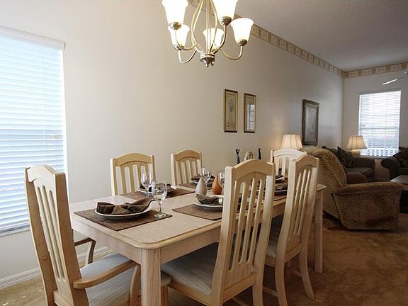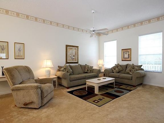 Just bring your suitcase to this gem of a property as it is move in ready, it has been lovingly maintained throughout by the current owners, enter into the spacious family room, dining area with an open plan kitchen and nook area with views over the pool and lanai. The large light master suite also has views of the pool, the master bath has a separate shower and garden tub, you also have a wonderful walk in closet. The 2nd and 3rd double bedrooms share the other full bath. There is a separate laundry room off of the kitchen. The nook has double sliding doors leading out onto the large south facing private lanai and pool which also has a covered area for alfresco dining and shade. The large pool which boasts solar and an electric heater also has a new multi speed pump to save some pennies, the rear garden is landscaped for minimum maintenance and includes a paved patio BBQ area. There is also a community heated pool and cabana area, floodlit tennis courts and a playground for you or your guests use The home is only minutes from the theme parks, numerous bars, restaurants and the fabulous shopping that central Florida has to offer with easy access to the East or West coast beaches. For you golfers you will be in golfing paradise.