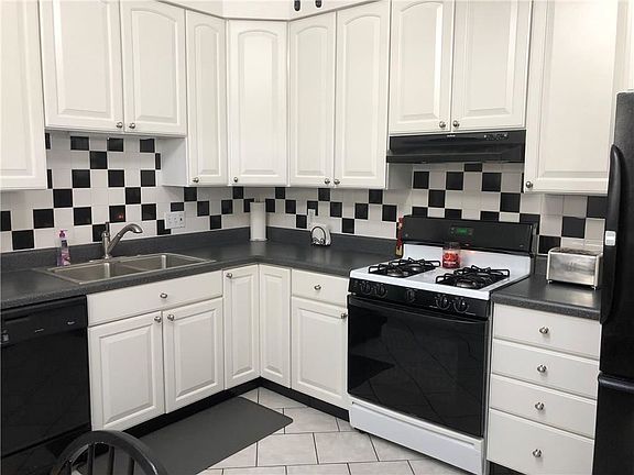Gorgeous!This home has been meticulously maintained. The sparkling eat-in kitchen boasts a cathedral ceiling with skylight, loads of cabinetry, modern ceramic tile flooring/backsplash, and comes equipped with appliances. Newer carpeting in the living room. The huge master bedroom features double closets with a decorative woodwork accent area above. There is also a cathedral ceiling and skylight. The ensuite ceramic tile bath shines, and features a large shower with built-in seat and floor to ceiling linen closet. Step out of the bedroom and onto a covered porch area. A great place to enjoy your morning coffee. The second bedroom has plenty of closet space and brand new laminate floors. A walk-in closet and first floor laundry are a few of the extra surprises. There is an integral garage, as well as a parking pad that fits two cars for additional off street parking. Newer roof, furnace/ac. New blinds.