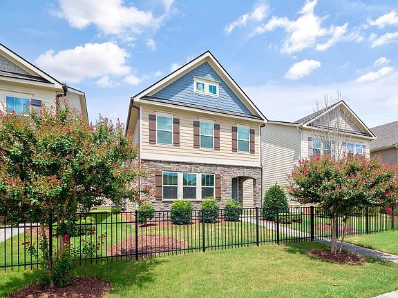OFFER ACCEPTED. MUST SEE this Charleston Cottage Style Single family home located at PRIME Morrisville location! It features 3BD/2.5BA, a Loft and 2 car garage! Open concept floor plan with lots of natural light! Wonderful features like built-in cabinets in family room, engineered hardwood flooring on main level, elegant dark cabinets in the kitchen, granite countertops, tile backsplash, walk-in pantry, large island and more! Perfect for entertaining as kitchen overlooks living room and breakfast area. Spacious primary suite on second floor has tray ceiling, tiled walk-in shower, separate tub, double vanity, and a walk-in closet. Two additional bedrooms w/shared bathroom, and a loft round off the second floor. In built speakers, receiver, Home has a smart lock at front and back door as well as Garage door is equipped with smart home feature. CPI Camera already installed. Freshly painted, epoxy on garage floor. Neighborhood playground, picnic area, walking trail and next door Cedar Fork District park adds enjoyment to the daily lifestyle!LOW HOA that covers lawn maintenance!