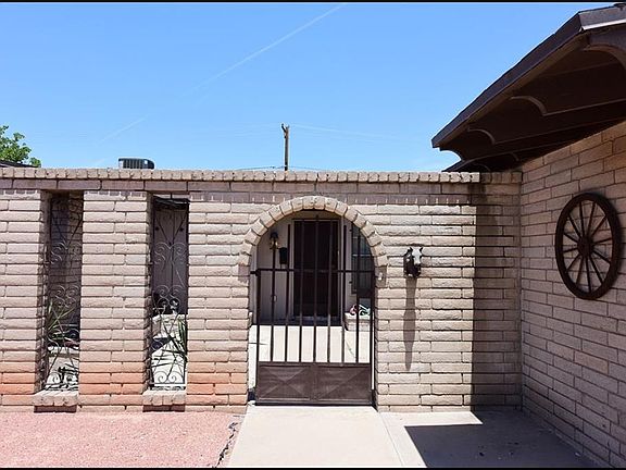 REFRIGERATED AIR!! plus a NEW ROOF!! This Western style brick home welcomes you by the Court-yard entrance, situated on a pretty stable neighborhood. This One-Story home features 4 Bedrooms, 2 Full-baths, Game room with "Cantina", wet bar sink. The open floor plan flows perfectly through the Formal Dinning, Kitchen, Breakfast area, and Family room with a fireplace. Two double door attached garage, and Storage room on the back yard. Nice Lot size of 12,600 Sq. Ft. Xeriscape landscaping on front yard!! Must see!!