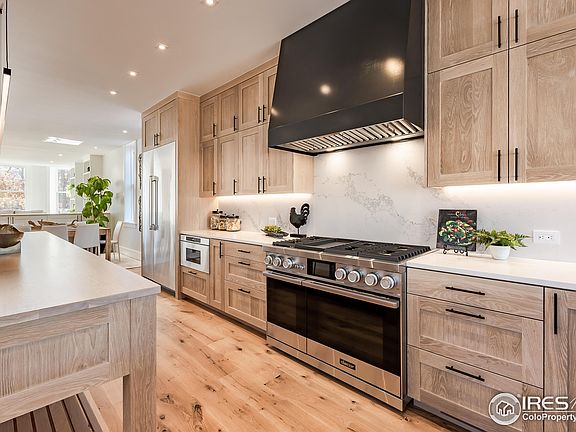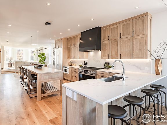 Turn-key brownstone nestled into Mapleton Hill effortlessly blends historic charm with modern luxury. A top-to-bottom remodel and expansion adds the finest designer details throughout this chic, turn-of-the-century home. An enchanting turret and inviting front porch give way to a sitting room with an original wood burning fireplace framed by bookshelves. White oak floors lead to a stunning kitchen boasting Dacor appliances, elegant white quartz counters, and a butcher block island. Opens to a main level office or guest room w/ ensuite bath, a mud room with built-in shelving, and powder room. Designed for entertaining, a large great room overlooks two accordion doors centered by a double-sided fireplace that seamlessly flows to a covered patio, fenced backyard and 2 detached garages. An overhead skylight and large windows encase an open-tread steel staircase in natural light, illuminating this statement piece throughout. Upstairs, a lavish primary suite features a fireplace, walk-in closet and spa-like 5-piece bath with steam shower. A convenient upper laundry leads to a secondary bedroom with an ensuite bath. The lower level offers rare 10' ceilings and radiant heated concrete floors. This additional living space is coupled with 2 baths and another private guest room; creating ideal privacy and separation. Two separate single car detached garages with EV charging capabilities. Builder is offering 20K credit for primary closet and/or wine cellar buildout. Please see floor plans and video at 617mapleton.com