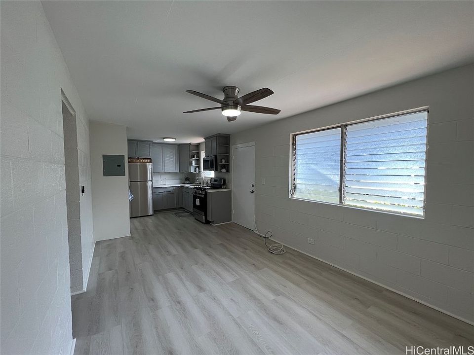 Conveniently located in the heart of Kalihi - right across Kalihi Kai Elementary, nearby frfeeway entrance, bus stops, grocery stores, shopping center, and fast food chains. Fully renovated, no popcorn ceiling, ground floor unit with 1 assigned parking stall right in front of the unit. Electrical and plumbing updated in 2024. Washer hookup and water heater located in the spacious lanai. Maximize your space with the brand new California style closets. Enjoy your kitchen with the brand new gas stove and refrigerator, some key features being soft close cabinets, corner lazy susan, and spice rack drawer.