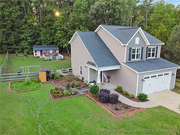 This 4 bedroom, 2.5 bathroom home in West Sanford boasts an open-concept living space perfect for relaxing or entertaining and offers a serene retreat without the restrictions of an HOA. The spacious kitchen offers ample cabinetry with island, granite countertops and stainless steel appliances. Living room features a gas fireplace. All bedrooms are located on the 2nd floor, with the main suite offering a nice spacious tub, separate shower, double sink and walk-in closet. Laundry room is conveniently located on the second floor. Enjoy your time outside in the fenced back yard with covered patio and Beautiful shed outback which is converted into an in-law suite which is heated/cooled and has privacy curtains. Not to mention , there is a small garden in the backyard as well. Conveniently located near downtown Sanford for great shopping and dinning. Nice commute to Ft. Liberty and also sits right outside of US 1 for short commute to Raleigh. You do not want to miss out on this Gorgeous home!!
