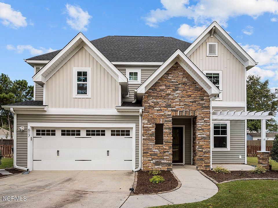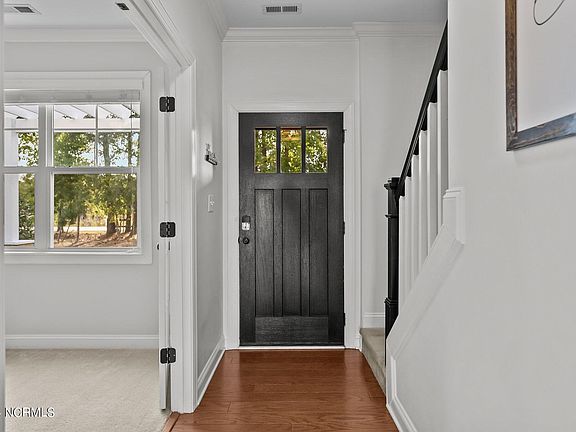 Welcome to 617 Morris Landing Road, available February 8th! This meticulously maintained Holly Ridge home offers nearly 2,400 square feet of living space, including three bedrooms, a first-floor flex room with French doors, an upstairs loft, and two and a half bathrooms. The kitchen features granite countertops and elegant white cabinetry, ideal for entertaining, while the living room's fireplace adds warmth for cozy Carolina evenings. Modern upgrades like a Yale Smart Lock, Nest Thermostats, and Ring Floodlights provide convenience and security throughout. Upstairs, the master suite includes a spacious walk-in closet and luxurious ensuite, accompanied by two additional bedrooms, a second bathroom, and a versatile loft. Step outside to the covered back porch and large fenced yard, perfect for pets or relaxing outdoors. Just 15 minutes from the beach and close to Stone Bay, Camp Lejeune, and local shopping, this home is move-in ready with a washer and dryer included. Flexible lease terms are available. Call today to schedule your private tour and experience this well-cared-for home! 3RD PARTY SITES LIKE ZILLOW ARE NOT PULLING ALL DATA CORRECTLY - PLEASE NOTE THAT TRASH IS NOT INCLUDED.