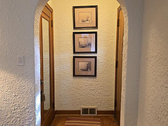 This 2 BR Bungalow is as delightful on the inside as it is on the outside. You will fall in love from the minute that you walk thru the front door to a large living room w/gas fireplace. The kitchen offers new butcher block counter tops finished with tung oil, a new sink & back splash. The kitchen also offers orig. flooring & an attached little breakfast nook and a handy little portable butcher block top island. Appl's. stay except upstairs frig is negotiable. Seller has tried to the best of her ability to maintain the original character of house which includes hardwood floors, glass door knobs, built in cabinets, & the cutest little built in ironing board in the kit. wall. The main fl. bath was updated in 2023 & a half bath was recently added in the basement around the corner from the shower. Furnace & A/C updated in 2019 & plumbing has been updated. There is great potential to add add'l. finished living space in the walk up attic. There is also potential in basement to finish another room. There is a cute little sun porch off of the dining room that leads out to a nicely landscaped back yard w/shed. This home also offers a 1 car det. gar. & an attached car port.