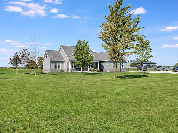 Nestled on the outskirts of the charming town of Gibson City, this magnificent custom-built ranch on 5 acres epitomizes the perfect fusion of style, function, and natural beauty. Crafted with impeccable attention to detail in 2018, every corner of this home exudes a sense of sophistication and warmth, making it an oasis of comfort and refinement. As you approach, the sight of the picturesque landscape and the inviting front porch sets the stage for what awaits inside. Stepping through the threshold, you're greeted by an open floorplan that effortlessly combines elegance and practicality. Towering 9-foot ceilings create a sense of airiness, while an abundance of windows bathes the space in a soft, inviting glow of natural light. A set of French doors beckon you into a versatile room, poised perfectly for an office or a cozy reading nook. The layout is intuitive, with the bedrooms thoughtfully split for optimal privacy. The junior suite, with its private bathroom and roomy walk-in closet, is a haven for guests or cherished family members. The heart of the home, the living area, is a testament to tasteful design. A striking gas fireplace takes center stage, creating a focal point that exudes both warmth and visual appeal. The kitchen, a chef's dream, is a masterclass in both form and function. Custom cabinetry provides ample storage, while quartz countertops exude luxury and durability. High-end commercial-grade appliances promise culinary delights, and the oversized island is not just a centerpiece, but a hub for family gatherings and casual breakfasts alike. A thoughtful pot filler and a captivating backsplash serve as exquisite finishing touches. A hidden gem, the pantry nook, adds an element of practicality, offering additional storage and organizational opportunities. The master suite is a sanctuary in its own right. A walk-in closet, supplemented by an extra closet space, ensures that storage is never a concern. The ensuite bathroom is nothing short of a masterpiece. A walk-in shower with meticulous tilework, a striking common tiled accent wall, and custom vanities with an abundance of storage space create a spa-like experience. A three-car garage leads seamlessly into the laundry and mudroom area, complete with an attached half bathroom. Quality HVAC systems, electrical work, and an on-demand tankless water heater contribute to an efficient and sustainable home, ensuring utility bills remain manageable. Outside, the landscape has been meticulously planned. Mature trees have been strategically positioned, offering shade, privacy, and a touch of nature's tranquility. The result is a backyard that invites you to unwind, to host gatherings, and to savor the beauty of the seasons. To truly appreciate all that this property has to offer, schedule a private showing today.
