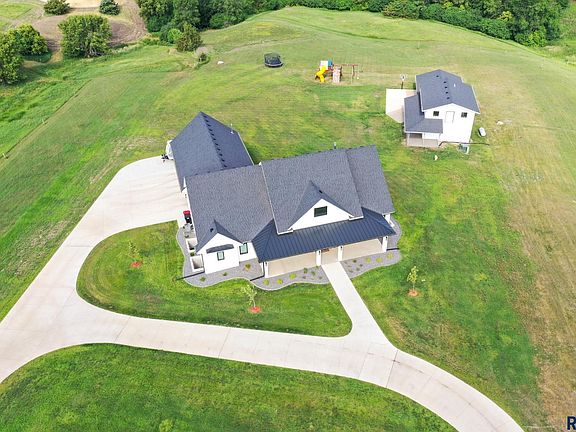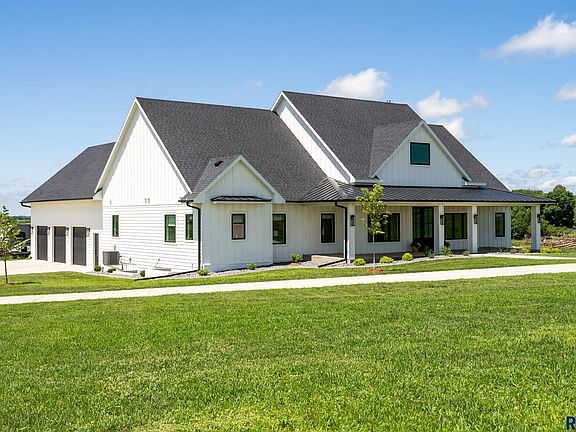 An amazing home with a view to match. Home sits on 10 acres of land just outside the city of Brandon. Enjoy beautiful sunsets from the covered patio. You may even see a deer or turkey walk by. The horse barn features living quarters (w/ heat/ac and 3/4 bath), a hay loft, and 3 stables. Hundreds of trees have been planted to increase the privacy & serenity further. Species include Maple, Apple, Cherry, Peach, Oak, Birch, & Pine. The home is stunning & features 6 bedrooms w/ potential for up to 8. Main-floor laundry off the master closet. The kitchen is a chef's dream & includes a butler's pantry, quartz counters, & plenty of cabinet space. The open concept is great for entertaining. You'll be sure to stay comfortable as the home has 3 zones for heat & AC. Basement includes 3 bedrooms (all w/ walk-in closets & 1 w/ en-suite bath), family room, a rec room, & plenty of storage. Spacious garage w/ epoxy floor & heat.
