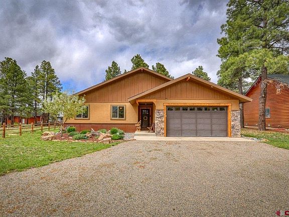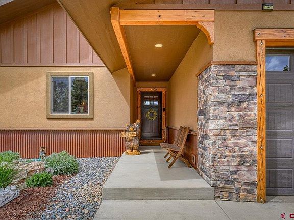 Picture perfect curb appeal, upgrade loaded, maintained to perfection and wait, just wait until you open the front door. The views of Pagosa Peak upon entry will stop you in your tracks. They are a back drop to this incredibly inviting charmer. You'll instantly feel the unmistakable quality and craftsmanship that define this very special nest. The beautiful entryway serves to welcome you into the most inviting open concept living space you can imagine. Masculine dry stacked stone begins on the outside and adorns the focal-point fireplace in the living room, which is accentuated by wonderful natural light and "Hallelujah" views of the mighty peaks which are picture framed into the oversized windows bookending the fireplace. As you survey the great room you'll notice the clever use of reclaimed Douglas Fir lumber and exposed beams to accent the beautiful color palettes of the dwelling space. The luxurious medium bamboo flooring is resilient and welcoming. Slide into the kitchen to appreciate the character that only alder wood can bring to cabinetry (my favorite) plus soft close drawers. The storage space here will thrill the chefs in your family. Next, focus closer on the lovely stainless appliances and upgraded hardware, plumbing and stunning electrical fixtures throughout the home. You'll envision spending a lot of time between the slab granite topped spaces, island and bright dining space when you're not getting cozy in the living room. As you continue through the home, check out the master bedroom next. Both it and the dining room have glass doors allowing entry onto the covered back patio. This is the perfect place to BBQ, play, entertain and just sip and soak in the beauty of the grass, tall pines and peaks. Yes, there is even a nice shed to store all your gear and goodies. The back yard is also dog ready. Back inside Martha! The master bedroom is sizeable and has a beautifully upgraded and oversized bathroom with waterfall-look custom tile and river rock shower surround, soaking tub and stunning porcelain tile afoot. The master is separate from the other two bedrooms for privacy. Each of the guest bedrooms share a full bath which is also most welcoming. Yes, the washer and dryer stay and the two car garage is completely finished with fast amounts of metal storage space surrounding the space for even more gear. Custom window coverings also stay with the home and help insulate it all year long. *Jumping outside you'll want to notice that the home was designed to be very low maintenance. The combination of dry stack cultured stone, rusted corrugated wainscot and more exposed framing beams lend to our hearty Colorado style. The home has a drip watering system for the beautiful landscaping plants. The roofing is asphalt tile, which minimizes the worry of where the snow will slide in winter months, unlike metal roofing surfaces. The perennial flowers will soon be making an appearance in the flower beds too. You'll also want to consider the terrific proximity to all things "Uptown" from this lovely home. The current owners utilize the miles of improved walking and biking paths that launch to your favorite shops, restaurants, lakes, canyons and beautiful recreation center which are nearby. Both Lake Forest and incredible Village Lake are within a couple of blocks of this home. *Mighty pines anchor the setting in the beautifully fenced back yard and tastefully landscaped and fenced front and back areas just expand the opportunity for outdoor fun. *You'll want to see this home immediately. Read more in the Addendum and act fast.