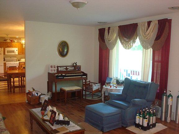 Well kept spacious custom built ranch home w/ poured walls by Carl Sangry (has many upgrades) GREAT location on 1 acre level lot - mountain & farm field views. Propane HW baseboard heat/Central air (2 zone) Back up generator & 2.5 car attached garage. Energy efficient furnace, water softener & reverse osmosis water treatment system. Covered front porch & rear concrete patio. Rural setting close to town!