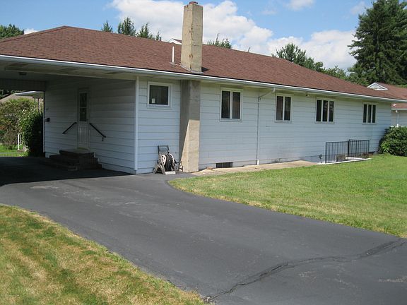 Well built brick front ranch on private level lot. 1.5 beautiful marble bathrooms, large room sizes, some hardwood floors under carpet. Central air with heat pump & hot water baseboard with additional heat provided by a newer oil fired boiler. Large covered front porch & carport off side entrance. Won't last long at this price. Offered As- Is except radon & termites.