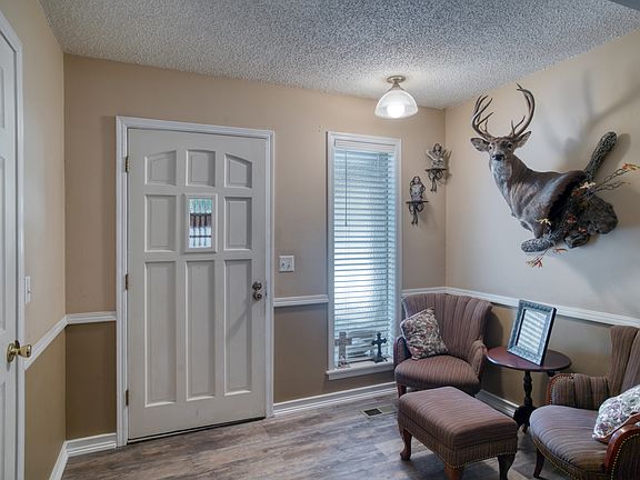 Newly updated kitchen & bath. Vaulted ceilings, 30x15 covered back porch with city registered 8x12 storm shelter. Drive through Porte Cochere oversized garage with storage. Close to schools & 2.6 miles to boat ramp & harbor marina.