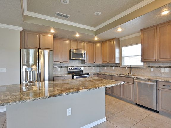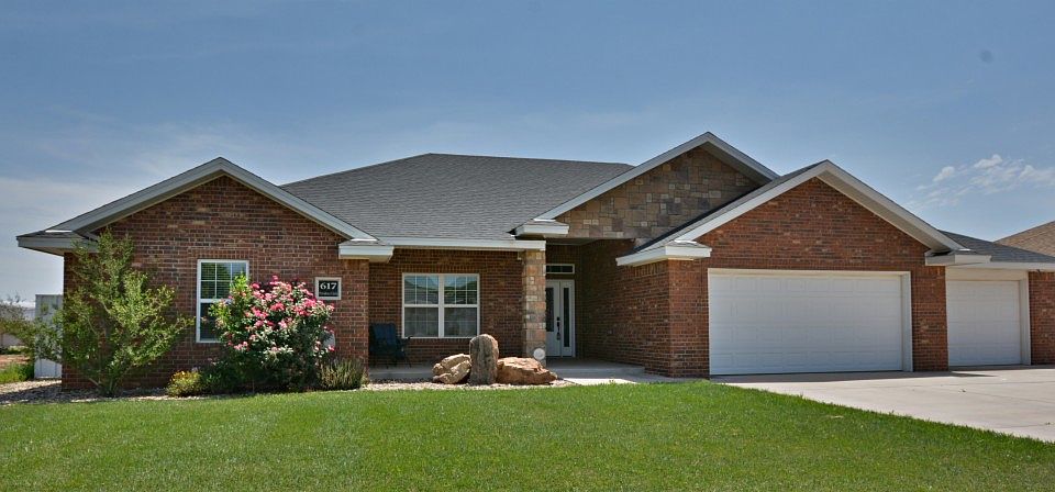 Are you looking for something GORGEOUS and DIFFERENT? The contemporary, yet classic styling of this home is going to blow you away! It has lots of unique features and a floor plan perfect for entertaining! The kitchen boasts a large island with seating for four, great SS appliances, walk-in pantry and a spacious dining area. The living room has a beautiful wood paneled fireplace, hardwood floors and a lovely floor medallion in the entryway. The split floor plan offers privacy, spacious bedrooms and plenty of storage throughout. You'll love the master suite with the large cedar lined closet, separate spa tub and spacious shower! Outside is just as amazing-with a three car garage, beautiful landscaping, built-in dog run and low maintenance eaves and privacy fence. Don't miss out on this fabulous home!